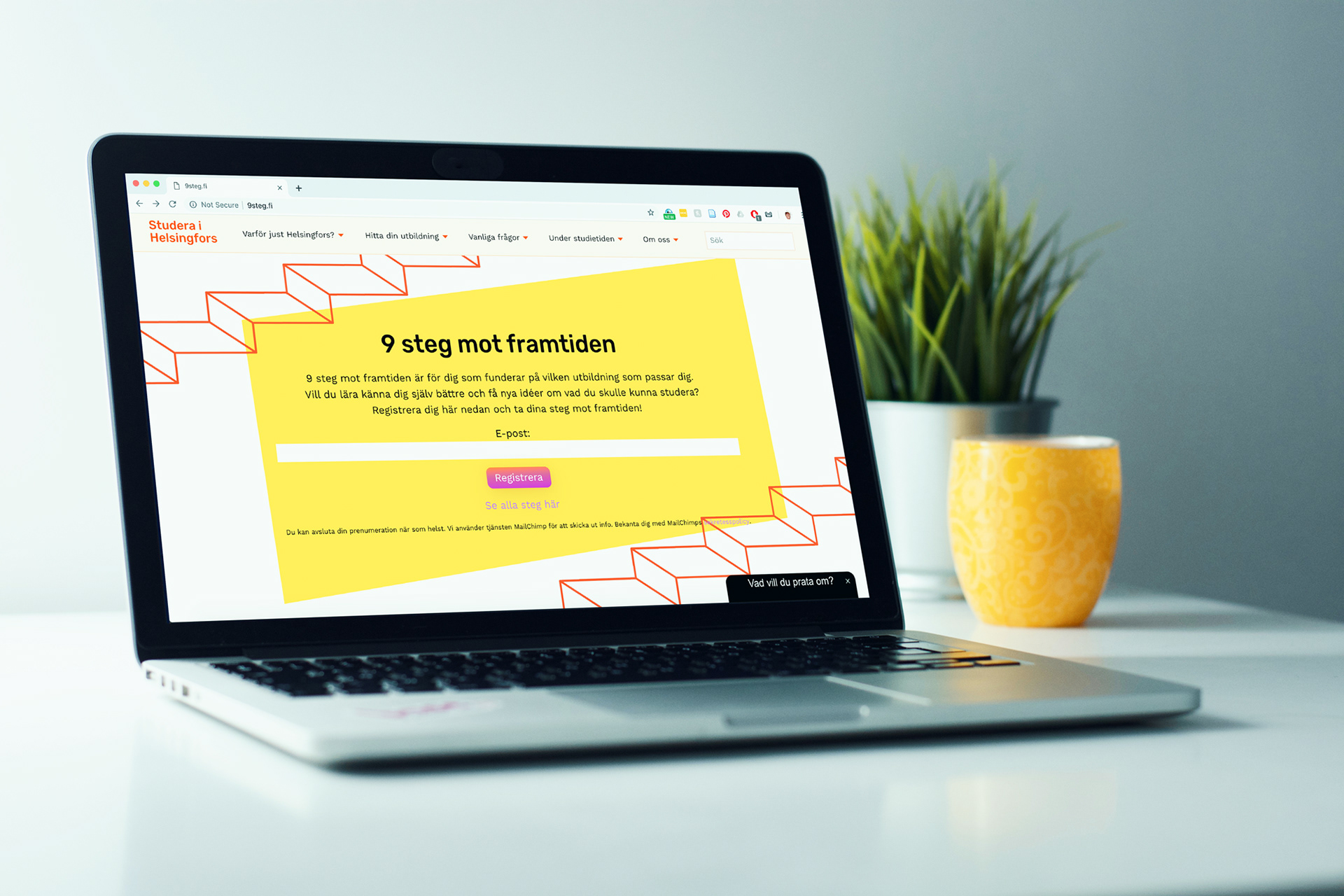 9 steg mot framtiden is a tool for teenagers to improve self-knowledge and figuring out the best study options. I developed the branding as the communication expert and graphic designer for the project Studera i Helsingfors.