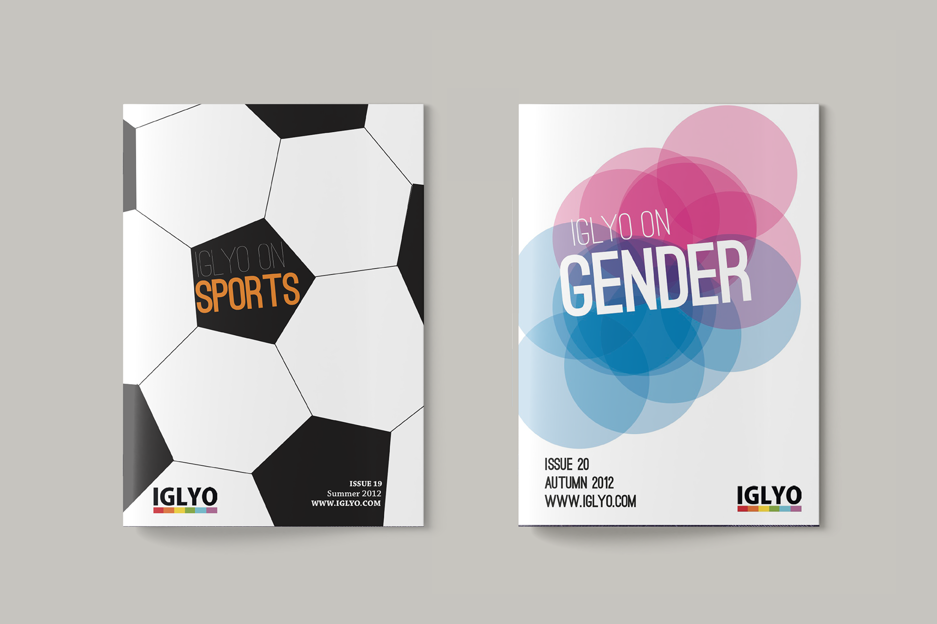 Pamphlet design for International Gay and Lesbian Youth Organization IGLYO. The IGLYO On... series covered different themes, such as sports, gender, dialogue and social media, from an LGBTQ perspective.